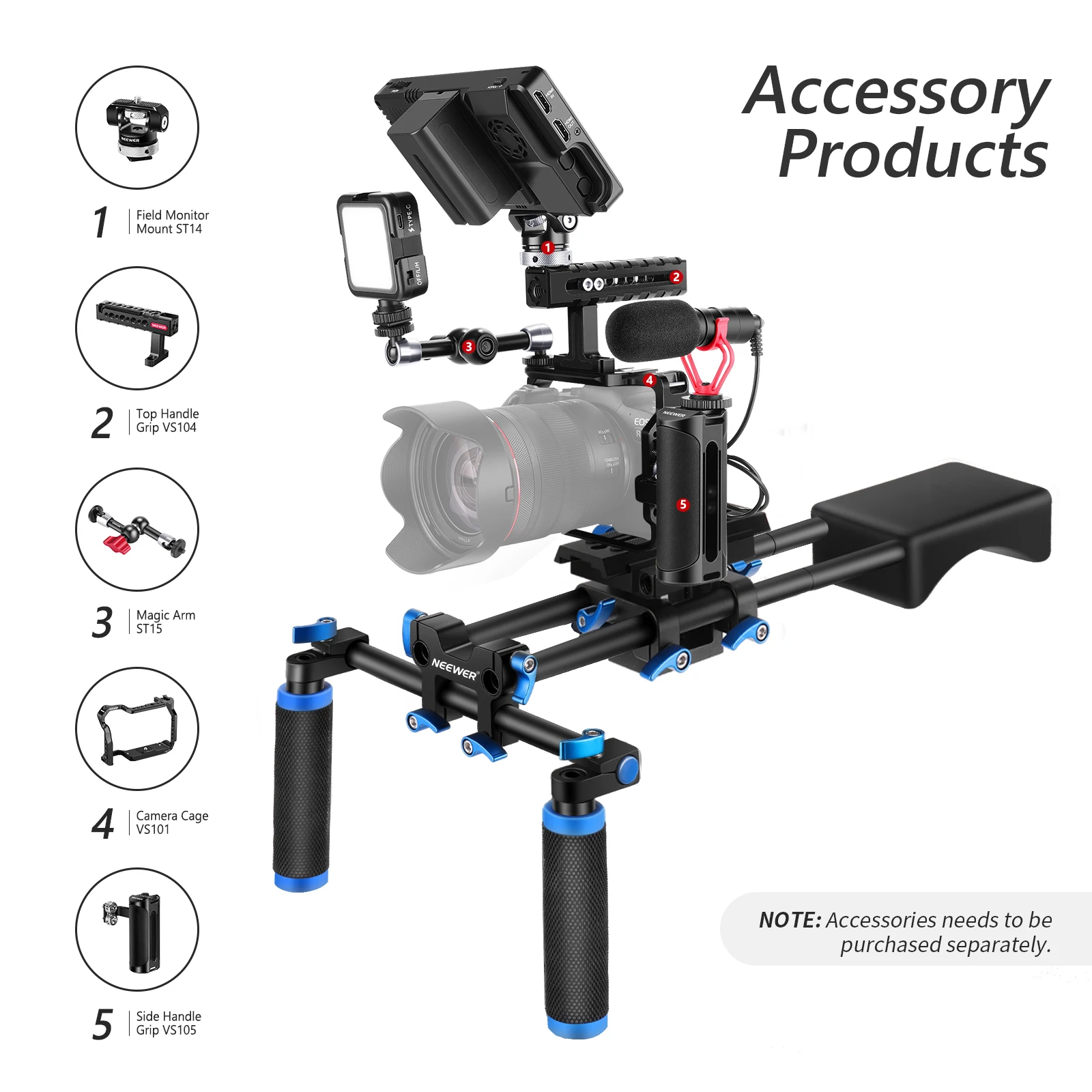 Наплечная установка для камеры Neewer, комплект для создания видео-пленки для DSLR камеры и видеокамеры с мягкой резиновой наплечной накладкой и двумя ручными захватами, совместим с Canon/Nikon/Sony/Pentax/Fujifilm/Panasonic