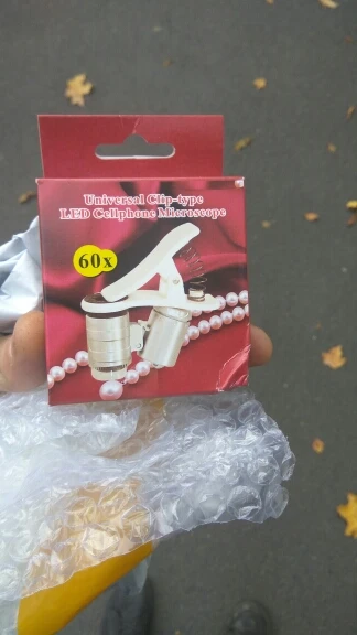 Микроскоп для телефона с зажимом 60X, увеличительное стекло со светодиоднойУФ-подсветкой для универсальных смартфонов iPhone, Samsung, HTC, Blackberry, Nokia
