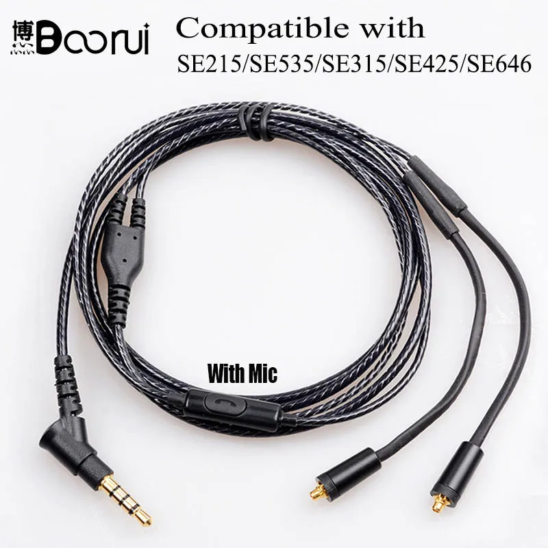 Кабель Boorui MMCX с позолоченным покрытием, съемный видеокабель с микрофоном для наушников SE215, SE315, SE425, SE535, SE846, UE900