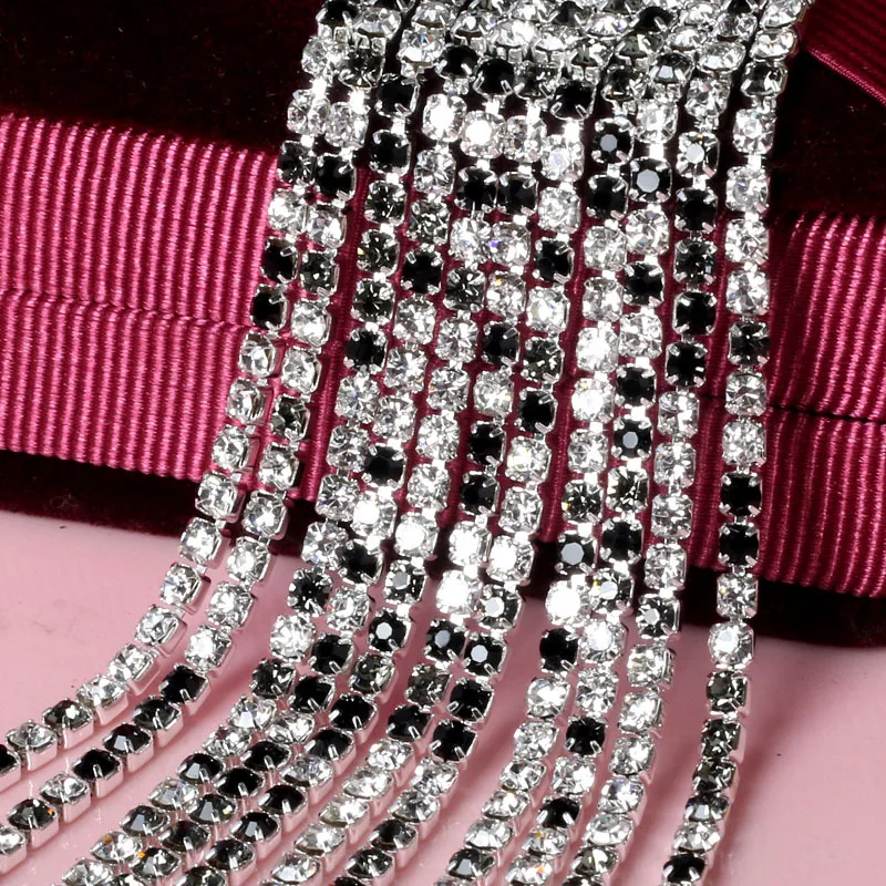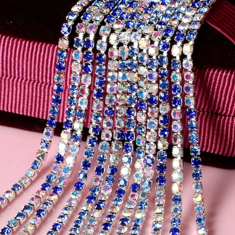 2 ярда/партия, SS6 2/3 мм, серебристая металлическая основа, Когтеточка для шитья, разноцветная Кубок из горного хрусталя цепь, Подрезка, ожерелье «сделай сам» Z120