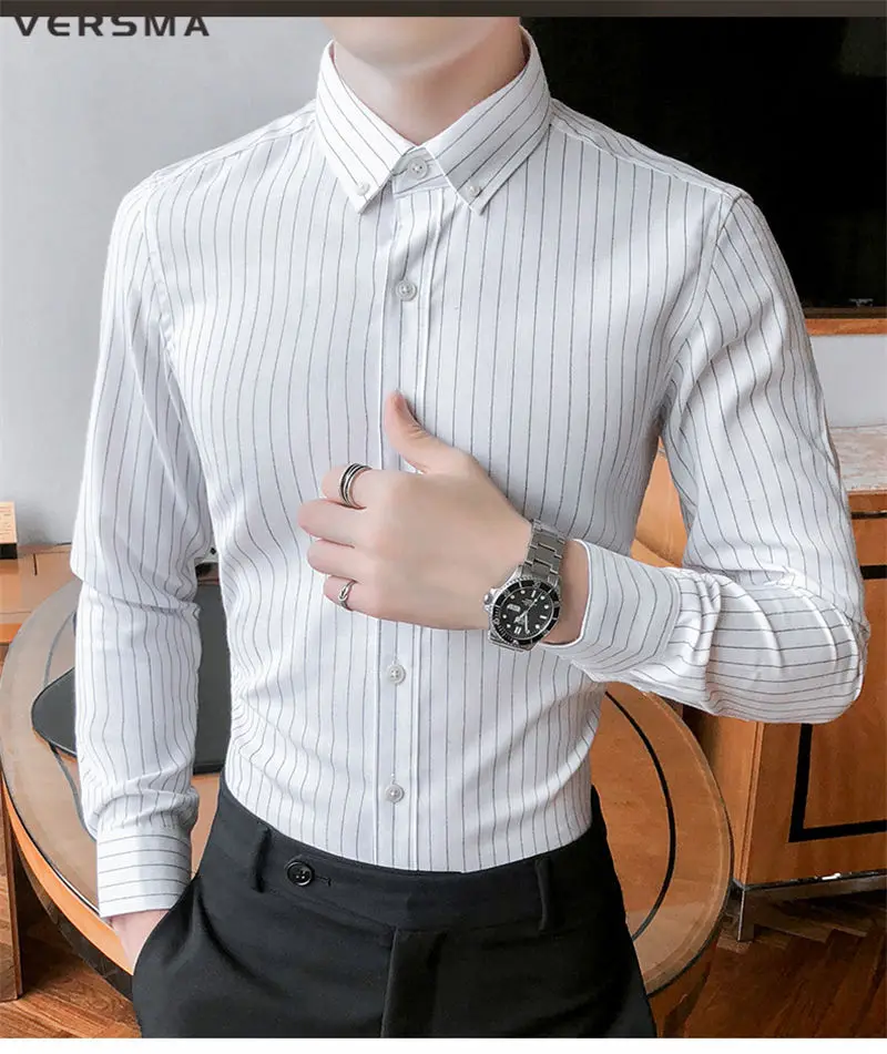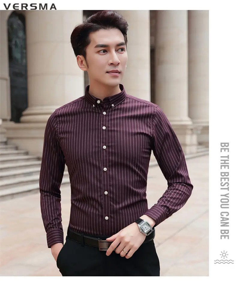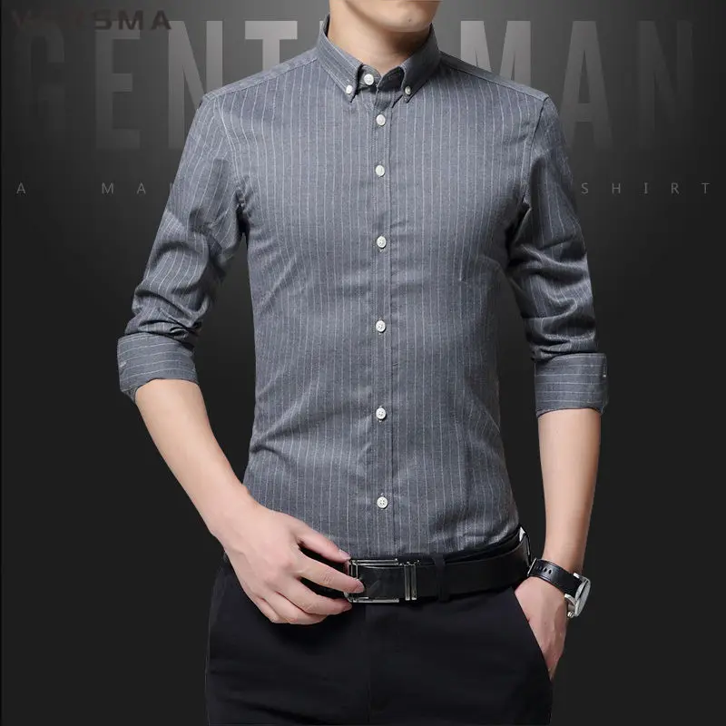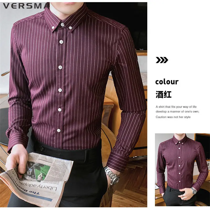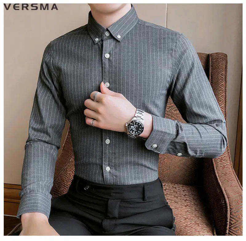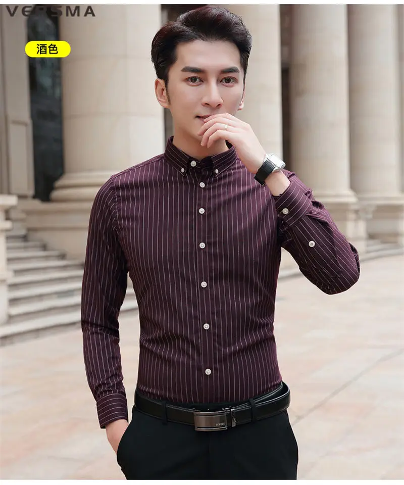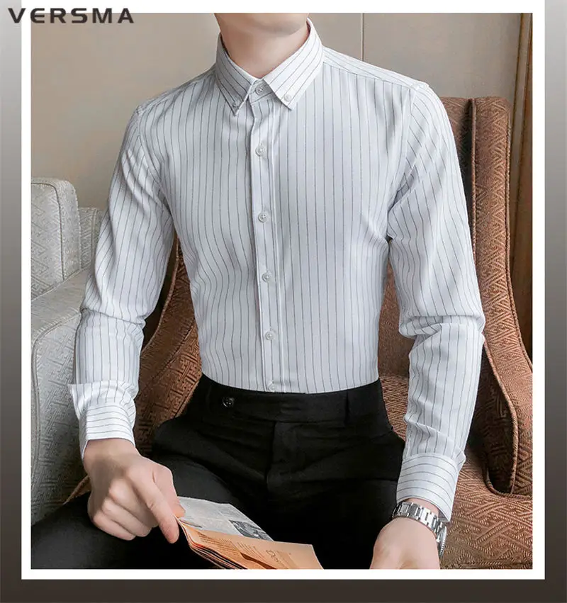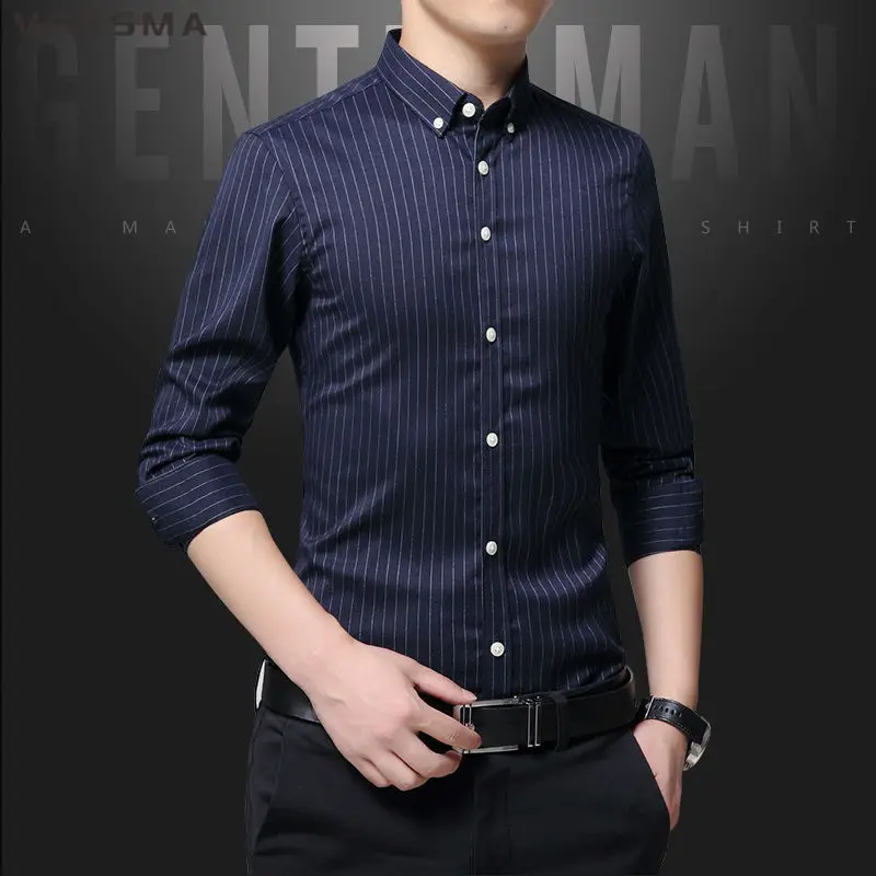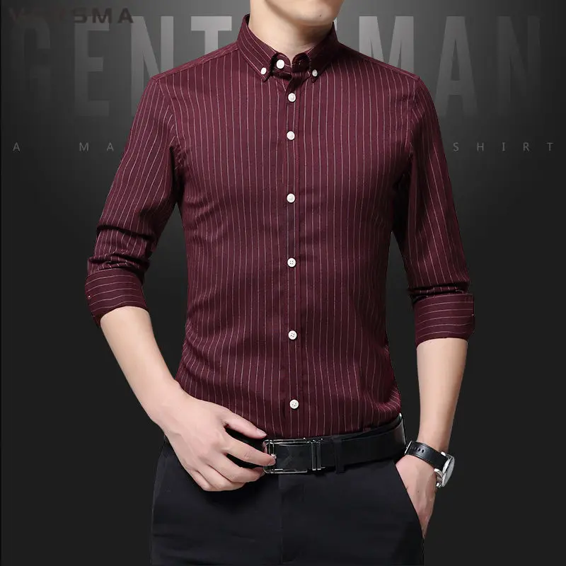 Рубашка мужская классическая в полоску, с длинным рукавом, в стиле ретро