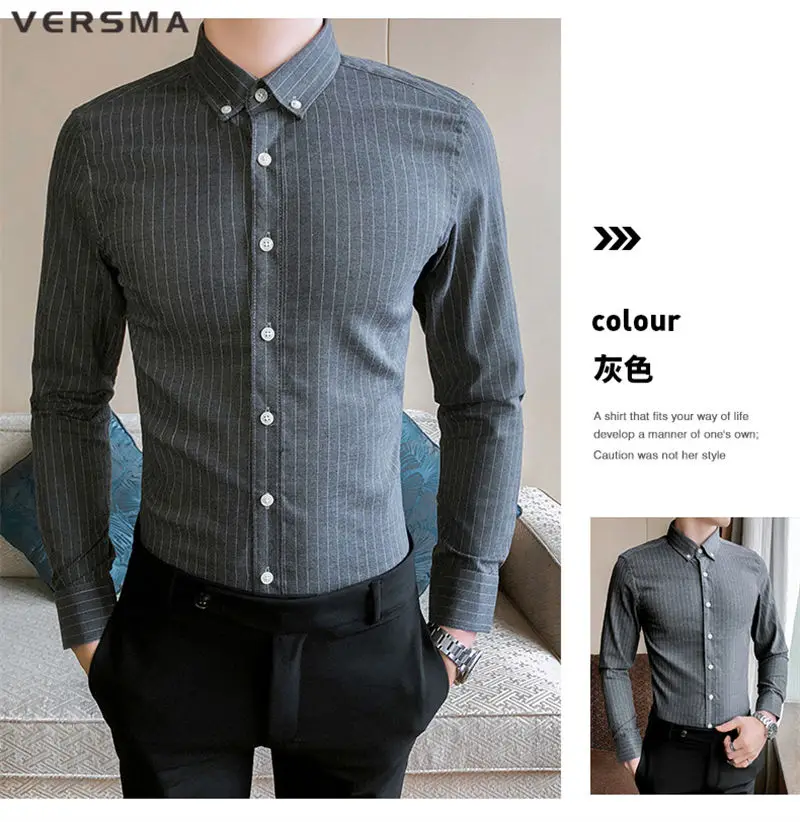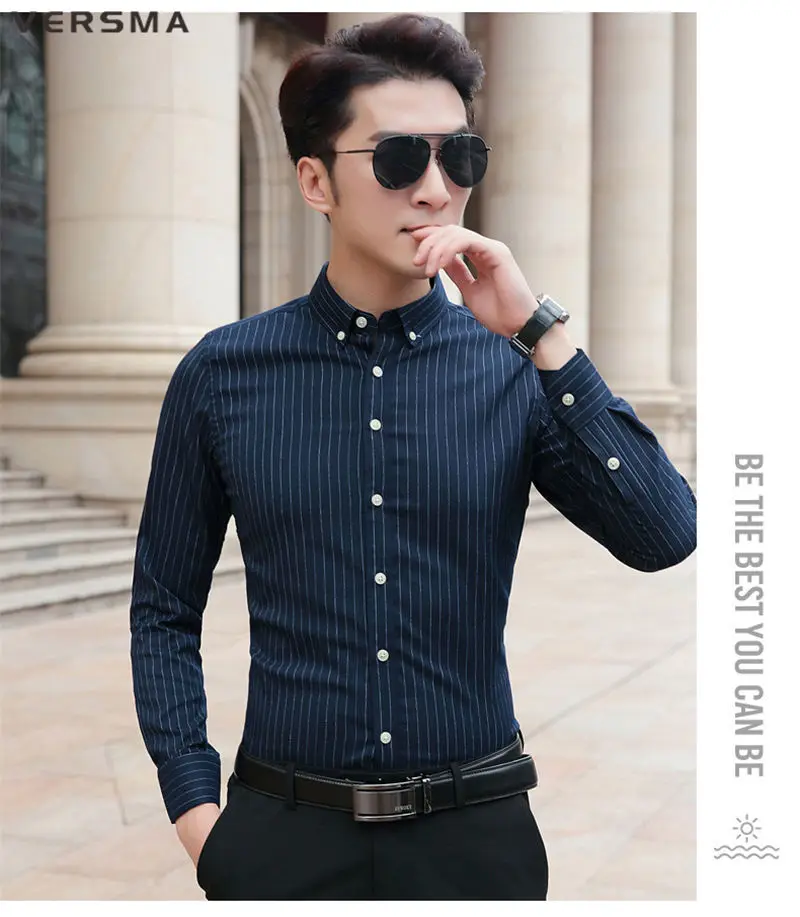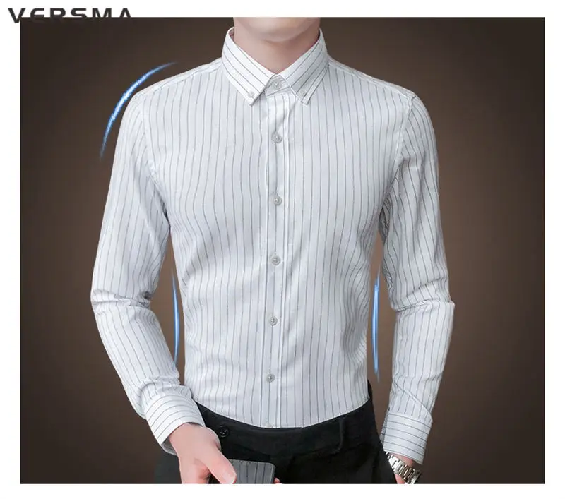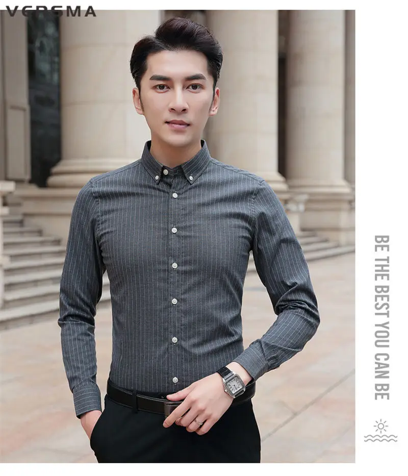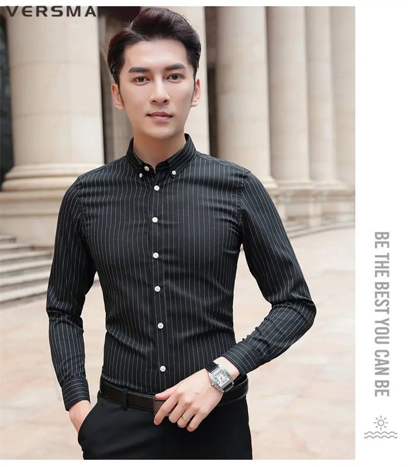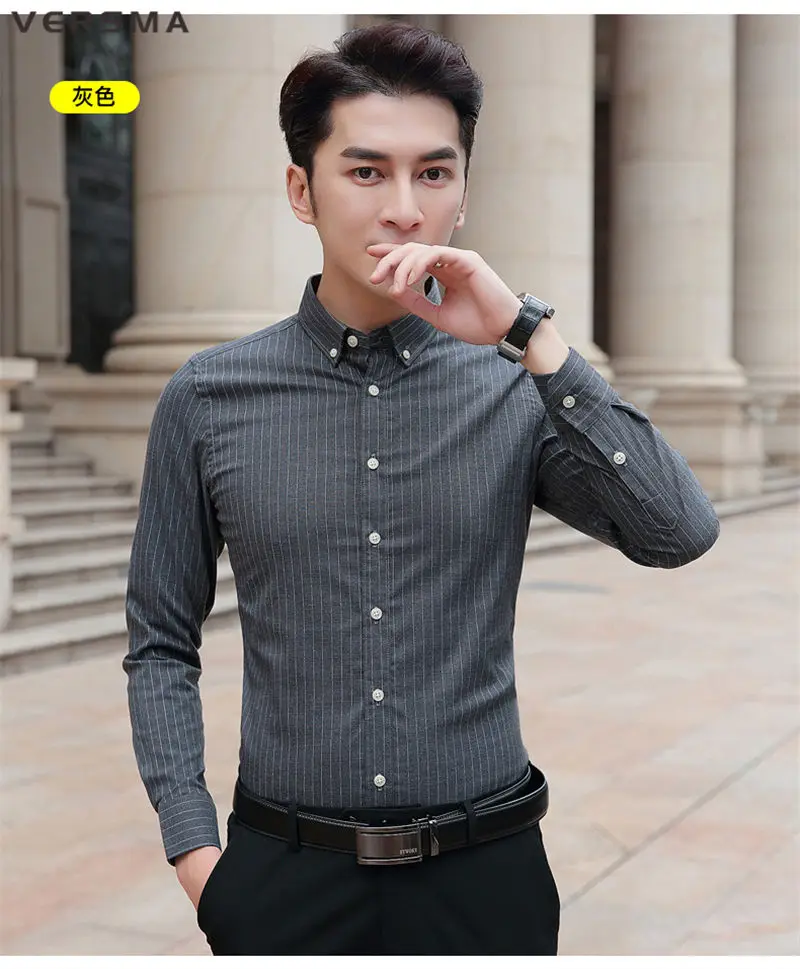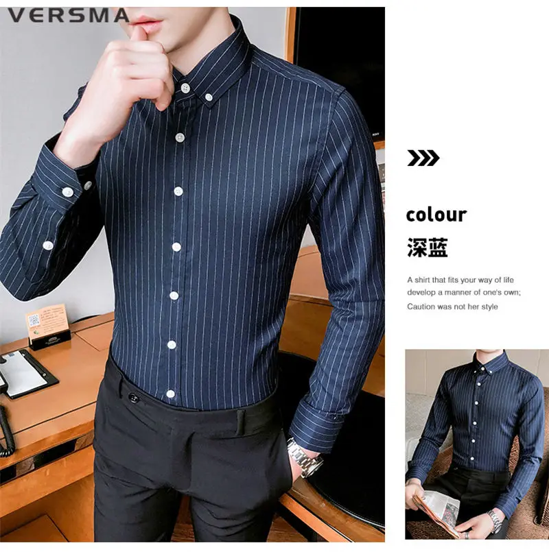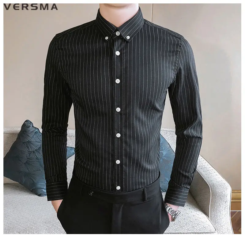 Рубашка мужская классическая в полоску, с длинным рукавом, в стиле ретро