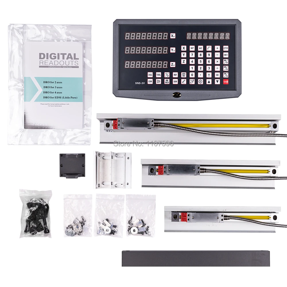 DRO 3-осевая цифровая индикация + 3 линейные весы 70-1020 мм, линейный энкодер, полный блок dro + Детали