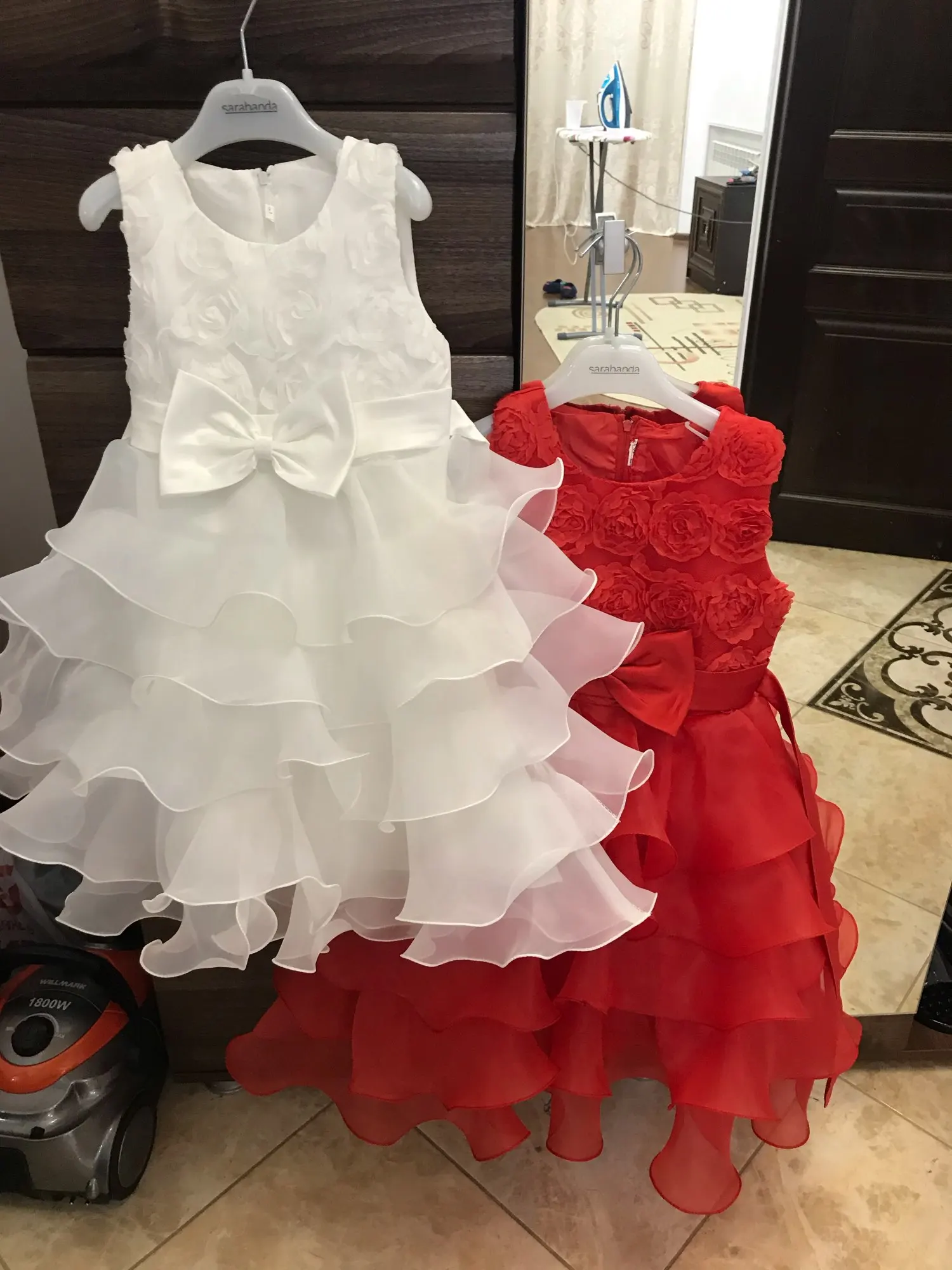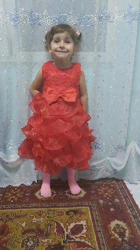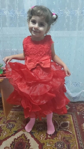 Платье очень нарядное. Возможно нужно внимательнее цвет выбирать- красное смотрится ооочень ярко. Сшито хорошо, нитки не торчат, подол пышный из плотного капрона.