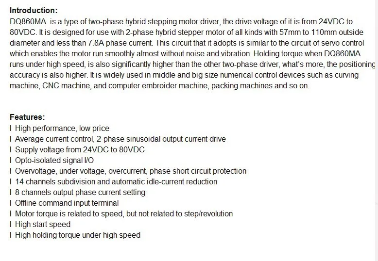 Вы можете выбрать Драйвер шагового двигателя: DQ860MA в соответствии
