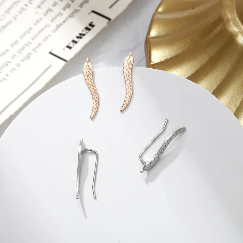 Серьги-гвоздики в Корейском стиле женские, Модная бижутерия в виде листьев, 1 пара, геометрический дизайн, золотистые серьги-каффы, 2019
