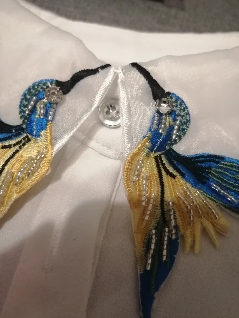 Женская блузка с вышивкой в виде тяжелых птиц, с воротником-стойкой