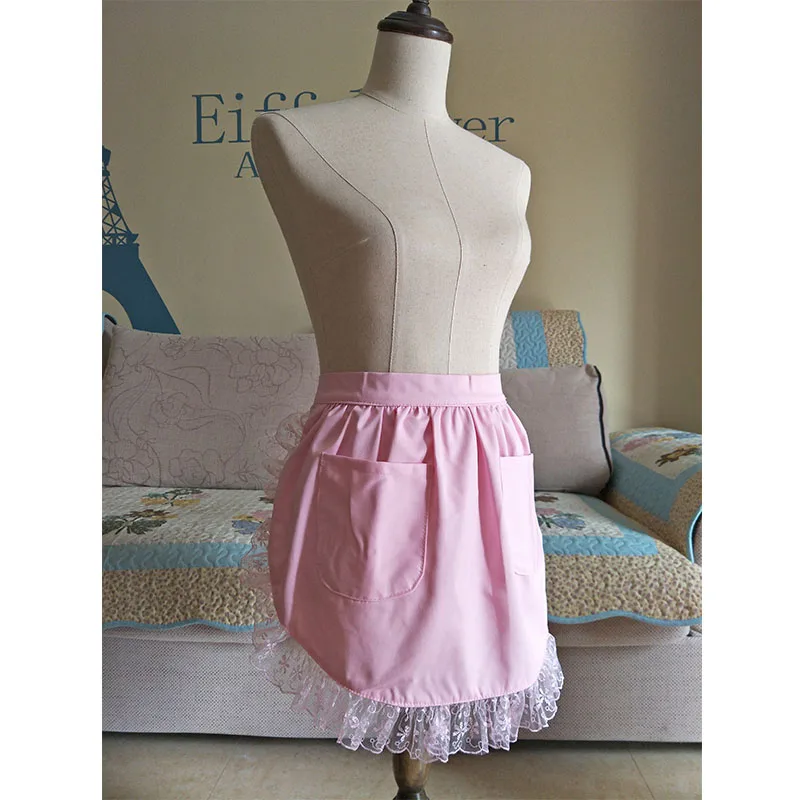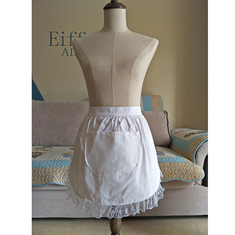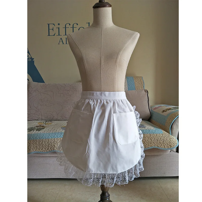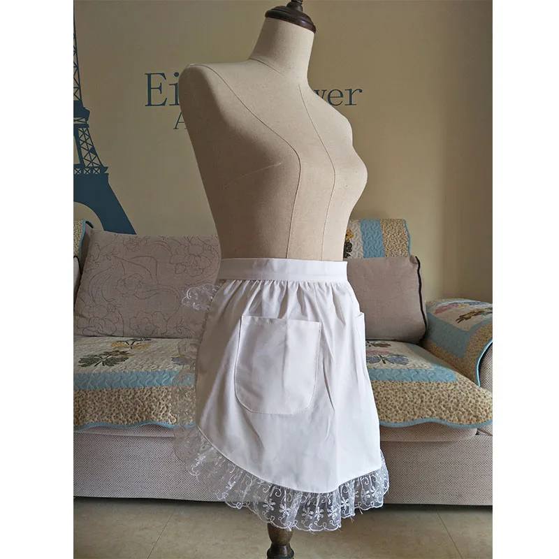 Белая кружевная передник с рюшами с половинной талией для ресторана, Женская кухонная передник фартук