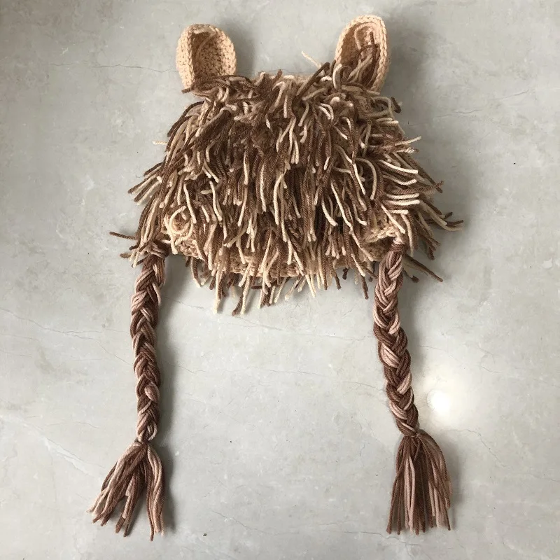 Детский осенне-зимний вязаный шерстяной парик ручной работы, головной убор льва, забавный подарок на Хэллоуин