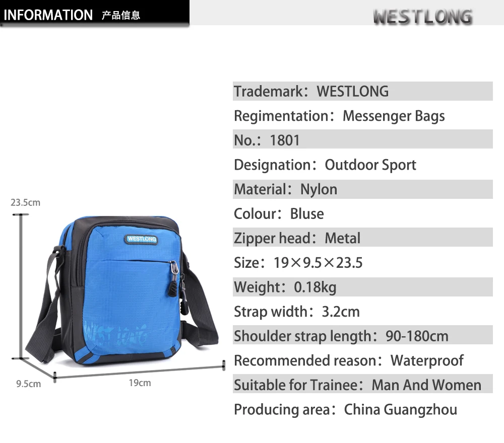 Сумка на плечо westlong для мужчин и женщин, нейлоновая Водонепроницаемая уличная модная дорожная сумочка-мессенджер на молнии, повседневный саквояж кросс-боди, лидер продаж, 1801