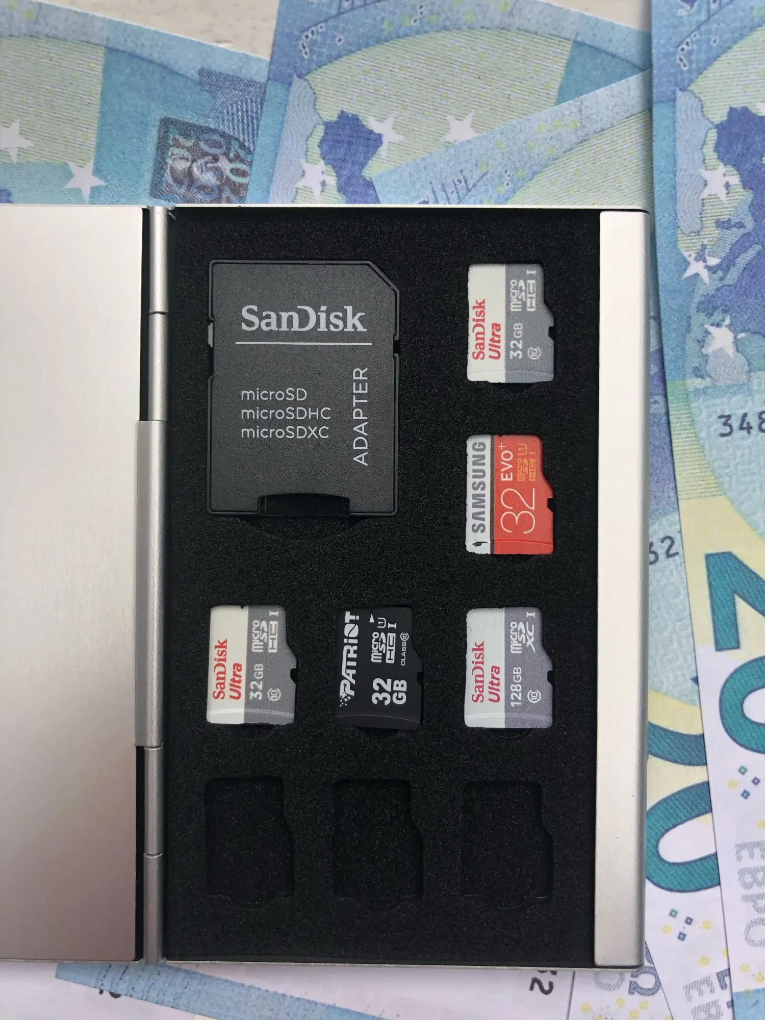 très pratique pour ranger un grand nombre de cartes micro SD sur un petit format. Permet également de placer un adaptateur micro SD.