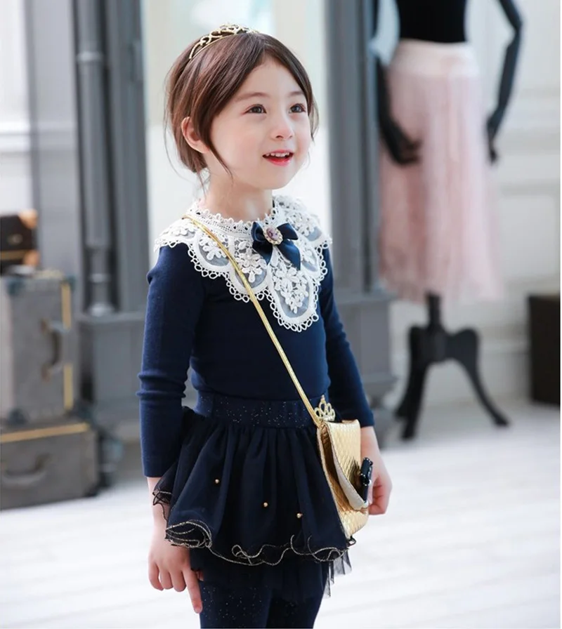 Кружевная рубашка для девочек, с воротником с оборками, Детская осенняя, сераябелая хлопковая блузка с длинным рукавом для маленьких девочек, блузки для свадебной вечеринки