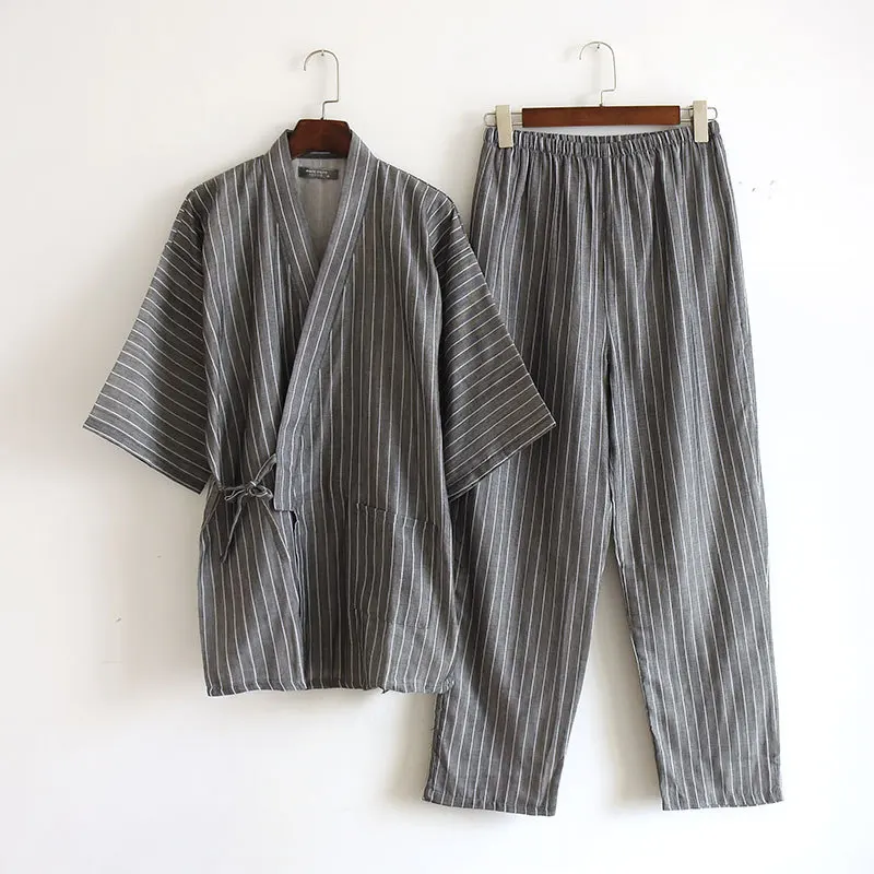 Японское кимоно из 100% марлевого хлопка, халат, простые брюки с коротким рукавом, мужские халаты
