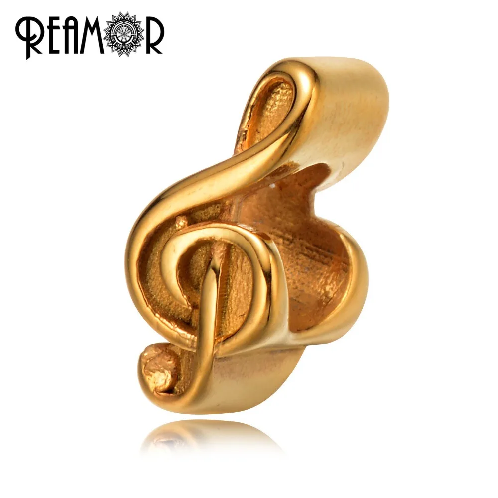 REAMOR вакуумные золотистые музыкальные ноты из нержавеющей стали 316l, европейские бусины-разделители, подвески для браслетов, ювелирных изделий