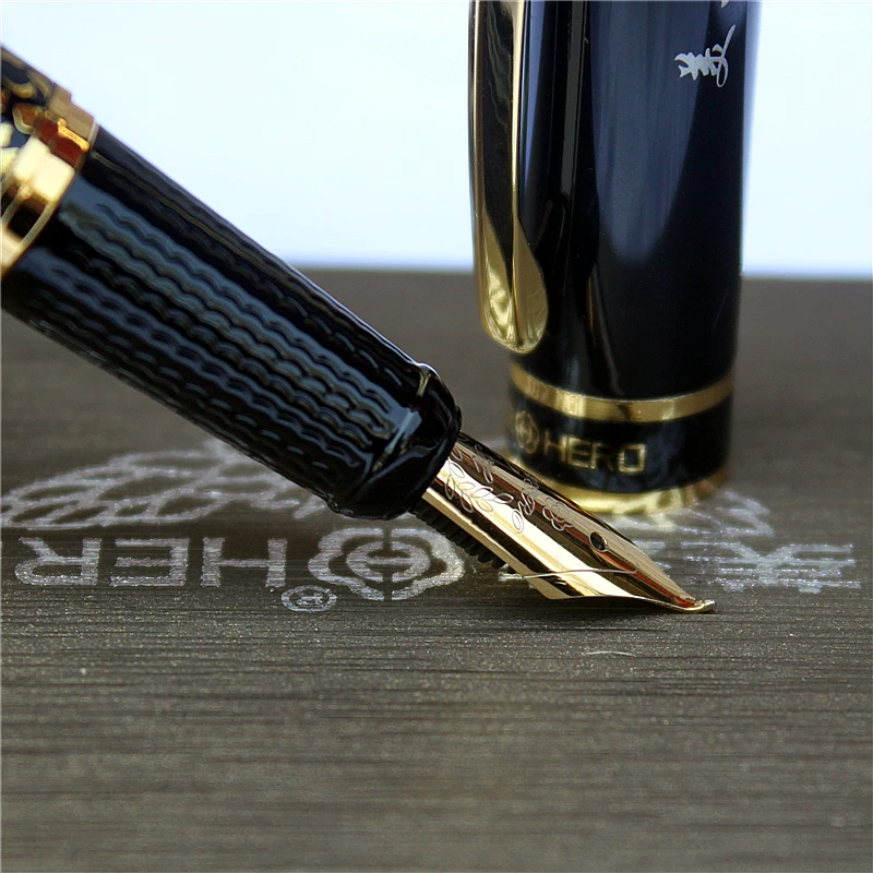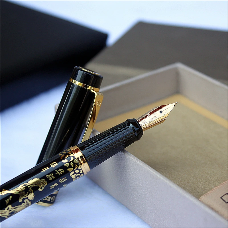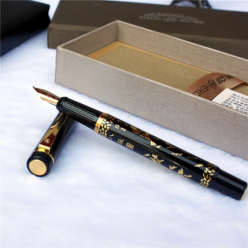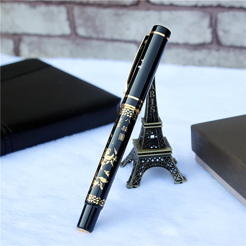 Ручка перьевая золотистая с рисунком лошади, 0,8 мм
