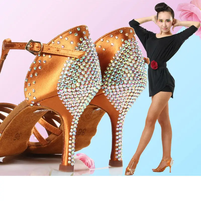 Стандартные танцевальные туфли, брендовые бальные туфли для латиноамериканских танцев вечерние женские спортивные туфли с бриллиантами коричневого цвета, высококачественные танцевальные туфлиErs скидка BD217zuan