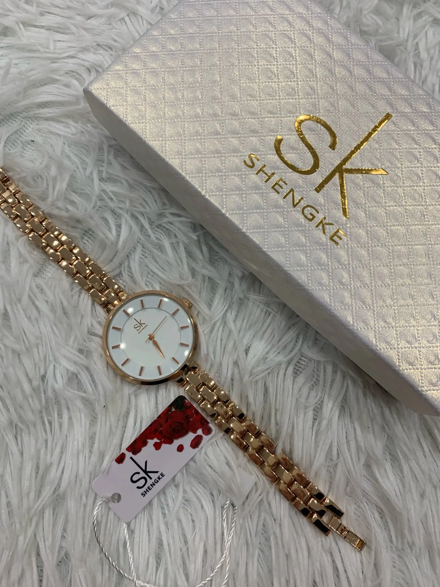 SK женские простые часы с круглым циферблатом, розовое золото, браслет, женские часы 2020, топовый бренд, нарядные кварцевые часы, женские часы, Montre Femme