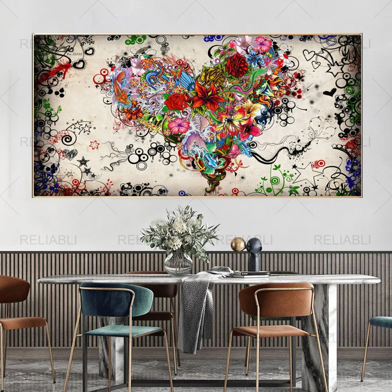 Современная Картина на холсте, абстрактные цветы в форме сердца, плакаты и принты, настенные художественные картины для гостиной, интерьер, домашний декор