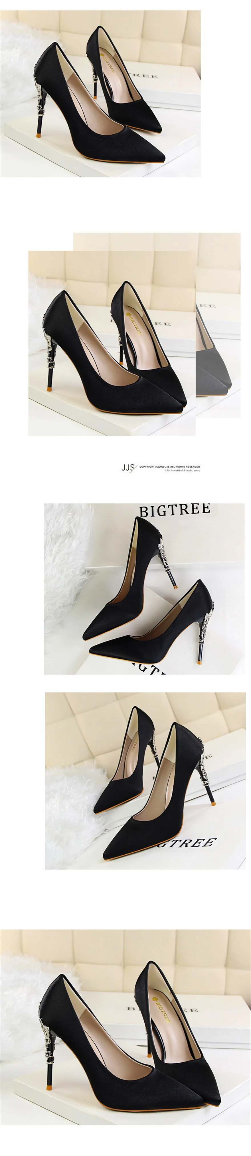 2021 г., элегантные женские туфли-лодочки на металлическом каблуке с резным узором модные однотонные шелковые туфли на высоком каблуке 10 см с острым носком женские свадебные модельные туфли