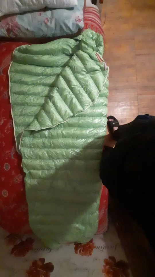 Спальный мешок с гусиным пухом My aegimax прибыл быстрее, чем было обещано, и это было именно так, как я ожидал, на основе отзывов Youtube. Он очень легкий и упаковывается насмешливо, маленький. Я думаю, что оценка в 50 градусов является точной. Я пользовался им вчера ночью во время кемпинга на улице и проснулась до температуры 39 градусов. Я был немного холоден в носках, подштанниках и тонкой пуховой куртке... но не мерзнет. Я 6 и 215 фунтов и я купил большой размер, и у меня много места. Коробка для ног также имеет большой размер. Это отличный сверхлегкий рюкзак для 3 сезонов использования в горы! Я использую его в качестве комфортного дома, и он также отлично подходит в качестве одеяла для кемпинга с красивой коробкой для ног, чтобы держать вас в тепле. Отличное качество по отличной цене!