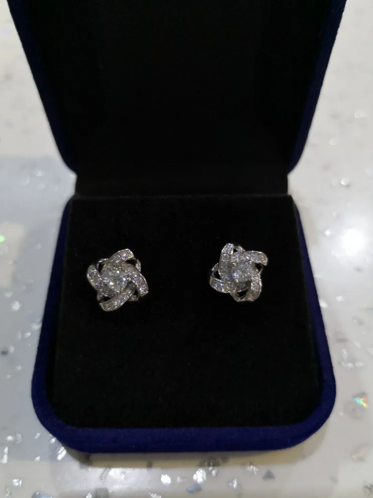 Серьги-гвоздики с кристаллами женские, свадебные украшения из стерлингового серебра 925 пробы с узлом и цветком