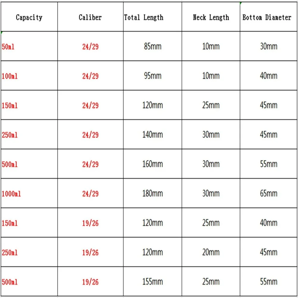 50/100/150/250/500 мл боросиликатных Стекло 19/26 24/29 один с закрытым носком вырез на плоской подошве...