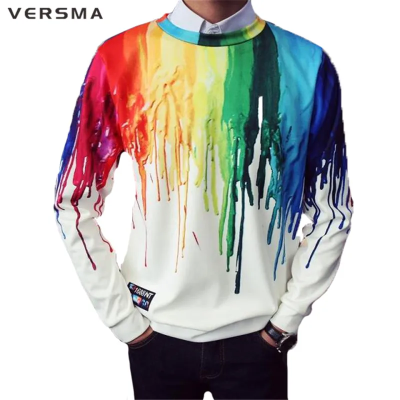 VERSMA Новая модная брендовая Повседневная Толстовка с О-образным вырезом аппарат для нанесения рисунка красками Толстовка для мужчин Slim Fit с длинным рукавом мужские толстовки пуловер спортивный костюм