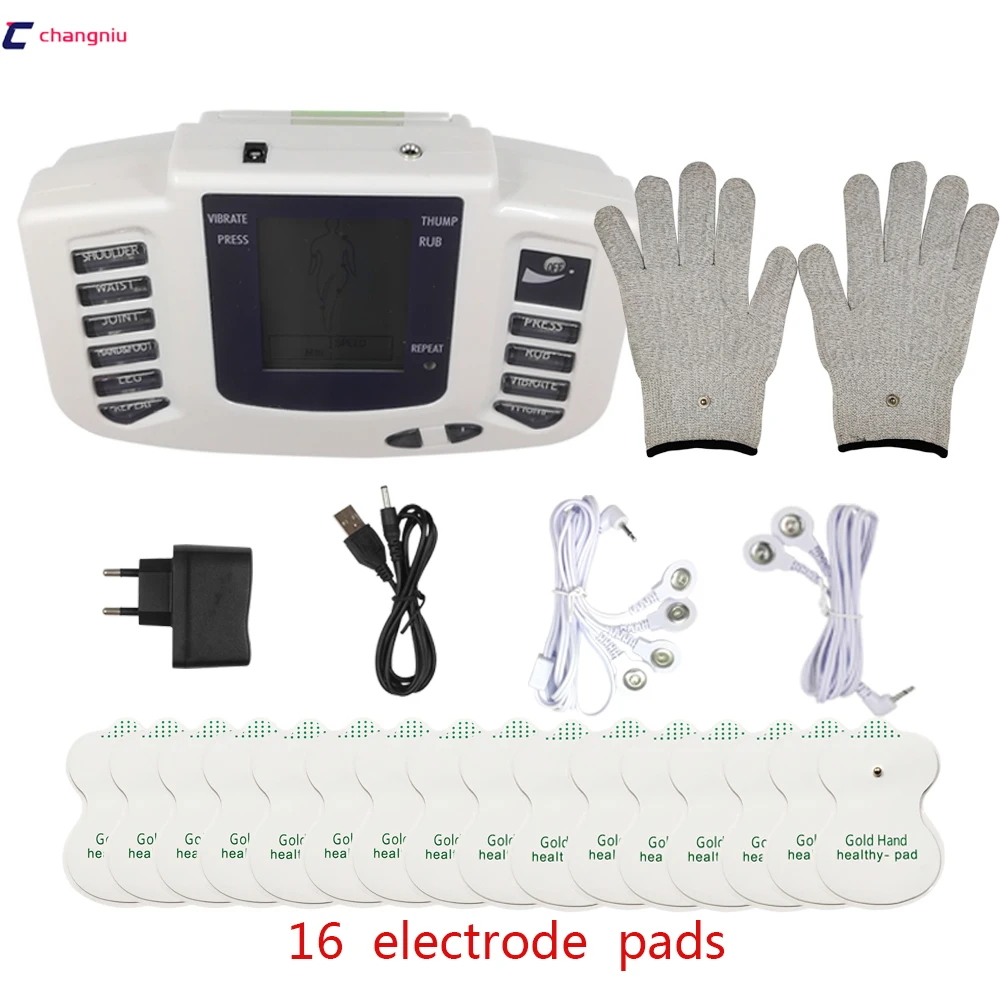 JR309 электрический стимулятор мышц, массажер, машина для терапии акупунктурой, массажер для похудения, 16 шт., накладки + перчатки