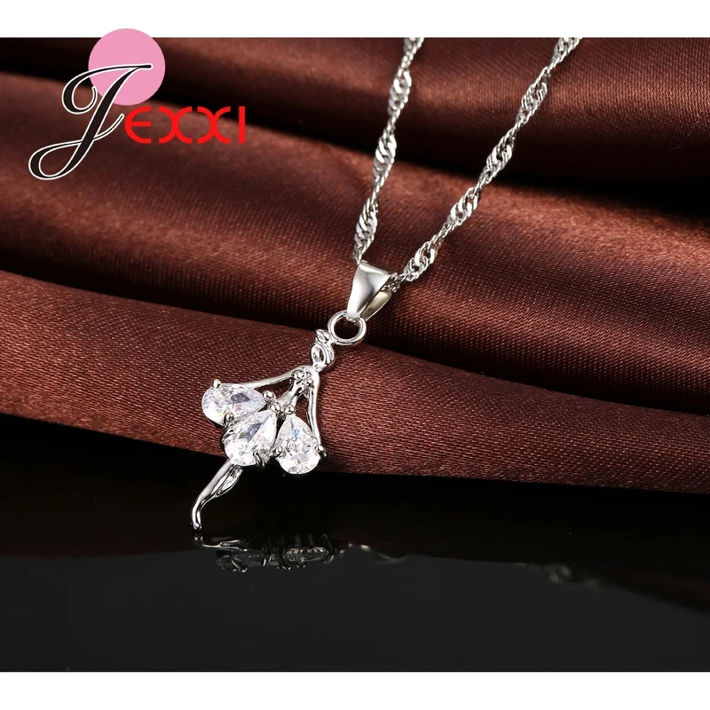 Женское Ожерелье с балериной, комплект ювелирных изделий из стерлингового серебра 925 пробы с блестящими кристаллами для свадьбы и помолвки