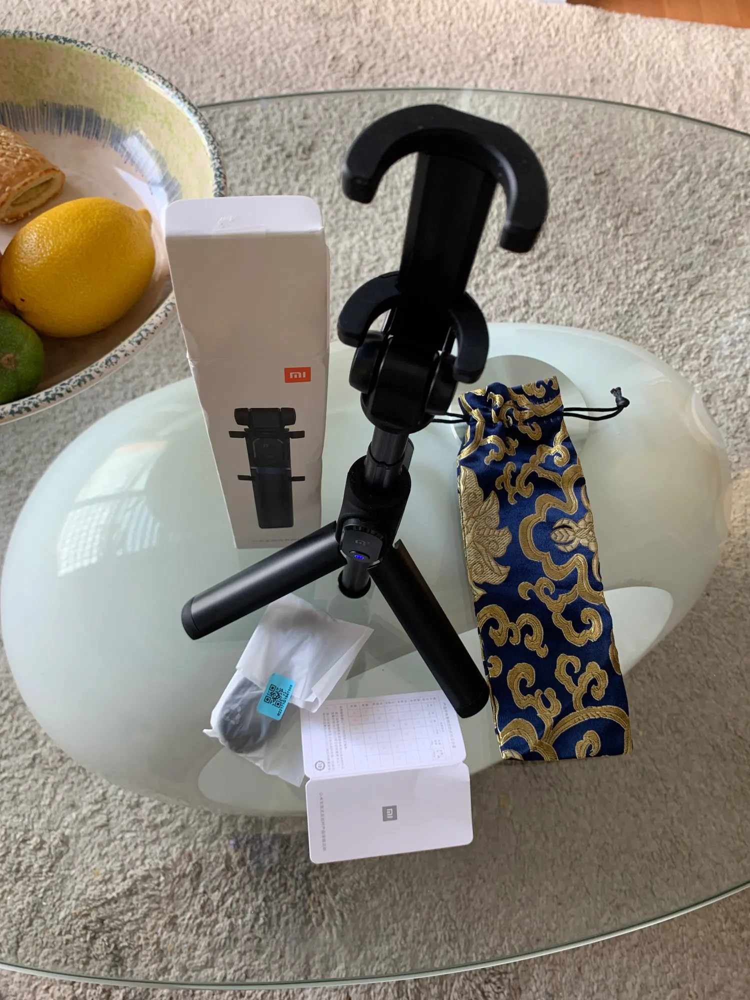 Пришло быстро. Все соответствует описанию. Очень понравилось что кнопка активации вынимается, и отдельно заряжается. Единственное замечание, немного слабовато держит большой телефон, но в спокойных условиях достаточно. Бежать и снимать на ходу видимо будет затруднительно.
