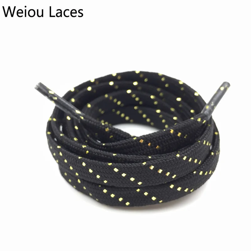 Официальный Weiou Причудливый Блеск черные белые золотые шнурки для обуви блестящие плоские уникальные шнурки на заказ металлические шнурки блестящие кружевные шнурки