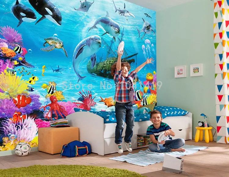 3D Мультяшные Настенные обои с изображением подводного мира, персонализированные Настенные обои для детской комнаты, экологичные влагостойкие Фотообои