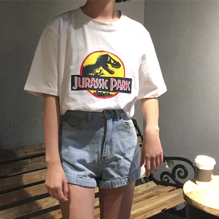 Женская свободная футболка с круглым вырезом и коротким рукавом, универсальная простая повседневная футболка с принтом в Корейском стиле