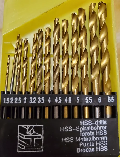 Набор сделан на @теъбись. Рукожопые китайцы даже заточку умудрились сделать обратную - сверла не сверлят, а развальцовывают отверстия. Пришлось все перезатачивать самому, благо наждак под рукой. Не рекомендую.