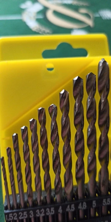 Качество конечно, швах: кривая-косая пластиковая коробка, такие же сверла - по большей части тупые и половина - без маркировки. Тем не менее, ставку оценку "отлично", потому что глупо требовать чего-то большего от набора за ~340 руб. Для дерева, пластика и алюминия - пойдет, для тонкой стали тоже сгодится.