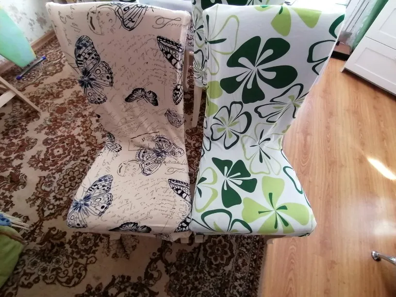 Отличные чехлы, класс! Правда стулья у меня с закруглённой спинкой, но сели отлично! То были просто стулья, а с этими чехлами прям украшение интерьера Спасибо магазину! Рекомендую Доставка почти месяц в Подмосковье