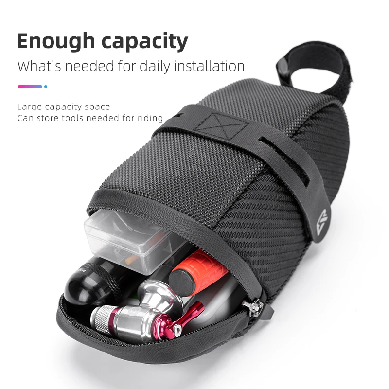 Это отличный продукт. Качественный материал и молнии. Достаточно большой, чтобы держать все вещи, которые могут вам потребоваться, чтобы заменить внутреннюю трубку или сделать некоторые на тропе обслуживания, если что-то не так. Крепится к трубке сиденья, а также к 2 бегунам под вашим сиденьем. Отличное соотношение цены и качества. Прибыла менее чем за неделю.