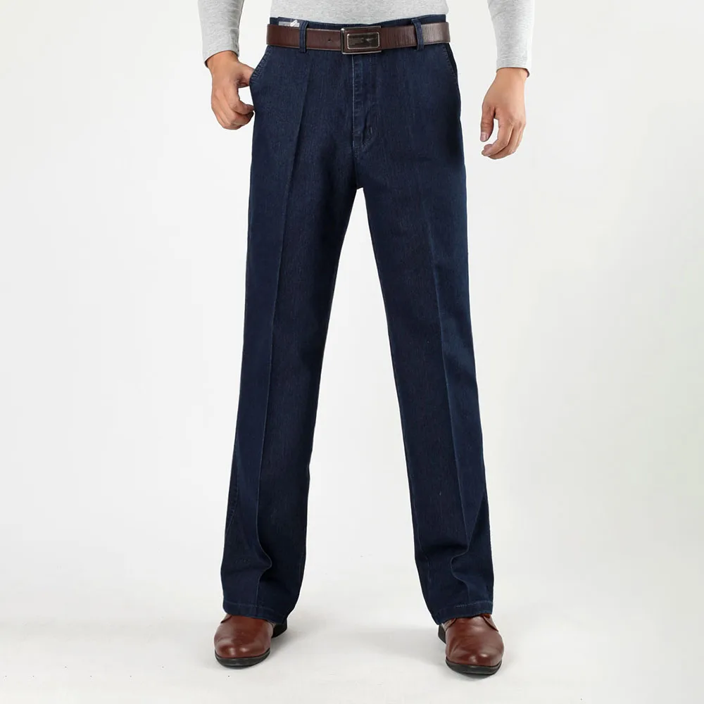Мужские деловые джинсы, мешковатые прямые джинсы стрейч, синего цвета, размер 30-45, размера плюс