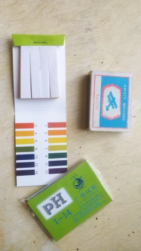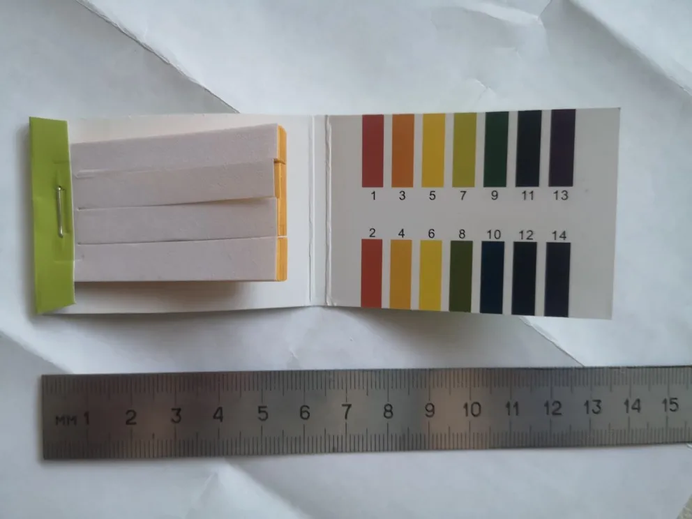 Полоски рабочие. Кислотная среда - полоска краснеет, щелочная среда - синеет