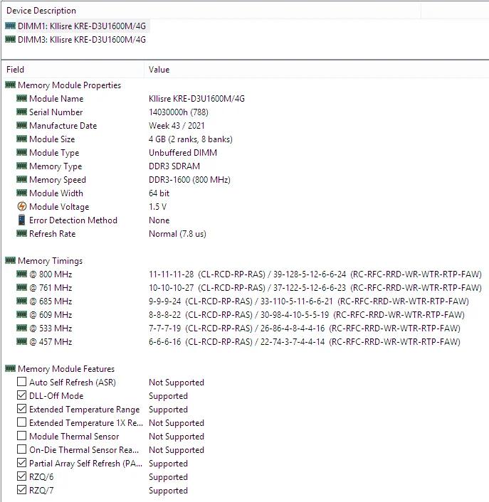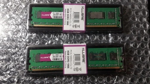 Быстро пришёл заказ,память рабочая.Заказывал две планки по 8 гб.Запустилась сразу.Работает и определяется нормально.Единственное,что мне не понятно,AIDA 64 одну планку определяет как KLLISRE,а вторую определяет как NONAME.Но думаю,что это не критично.