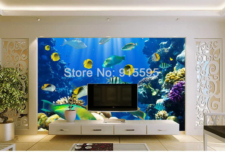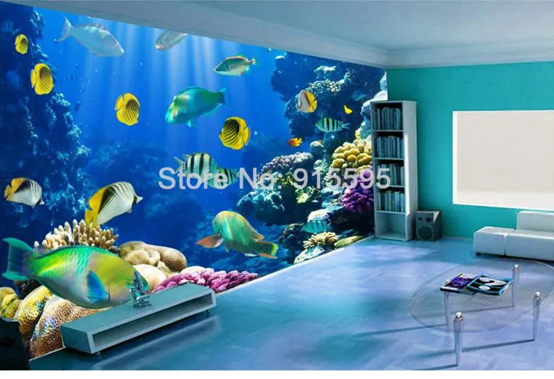 Настенные росписи 3D на заказ, большие настенные росписи с изображением подводного мира, рыб, кораллов, гостиной, кровати, комнаты, домашний декор, фрески
