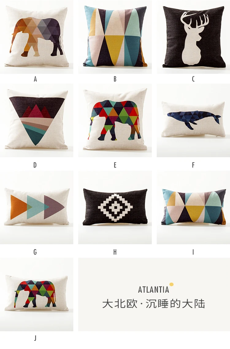 Nordic в виде геометрических фигур слон Подушка с оленем Геометрическая черная наволочка дома декоративные офисный диван-Наволочка на подушку