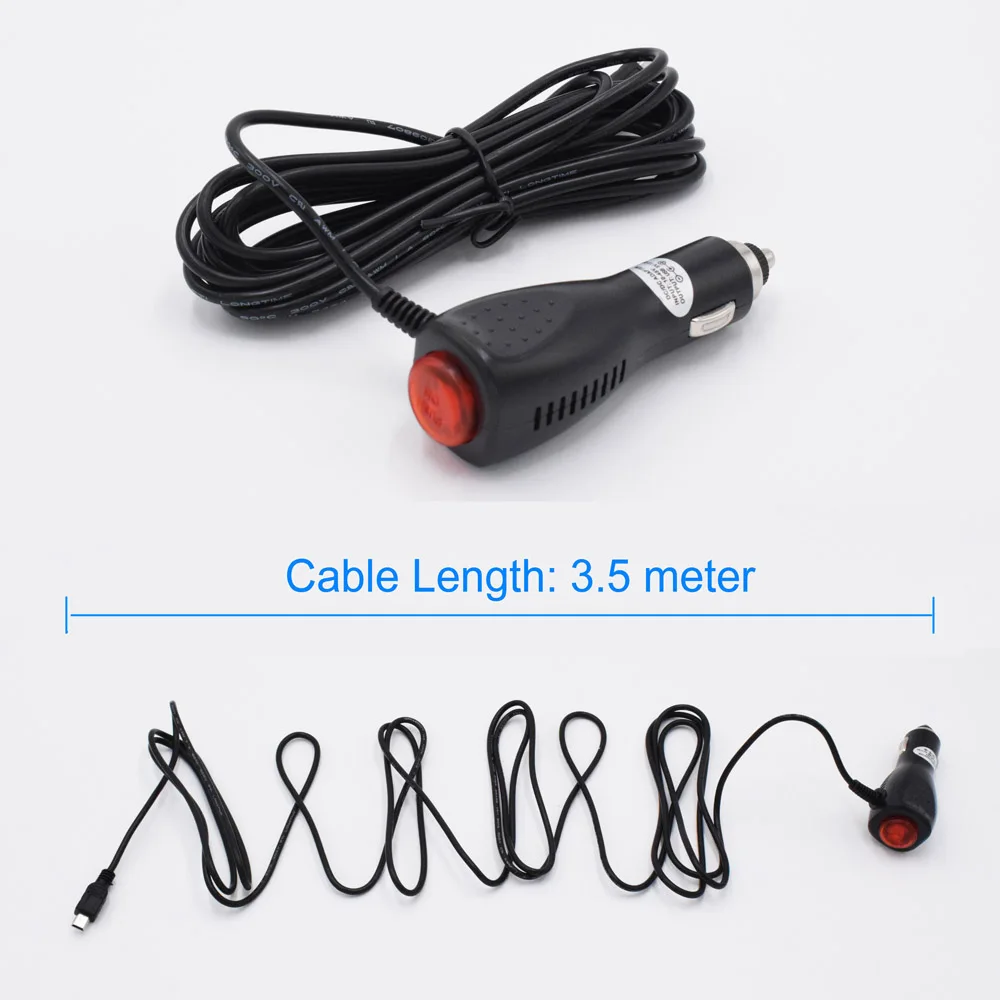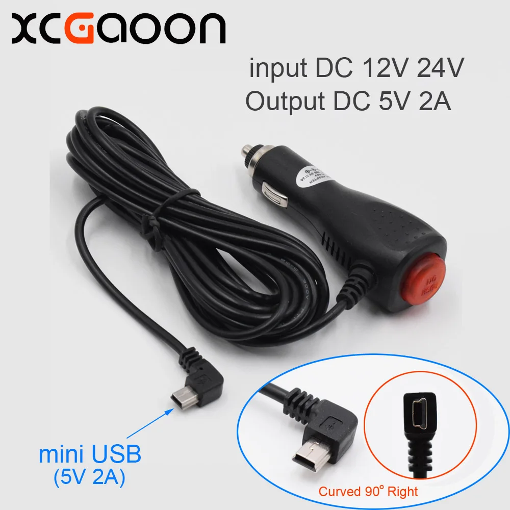 Изогнутое автомобильное зарядное устройство mini USB XCGaoon 5 В, 2 а с переключателем для автомобильного видеорегистратора, камерыGPSPad, вход постоянного тока 12-24 В, длина кабеля 3,5 м, фута