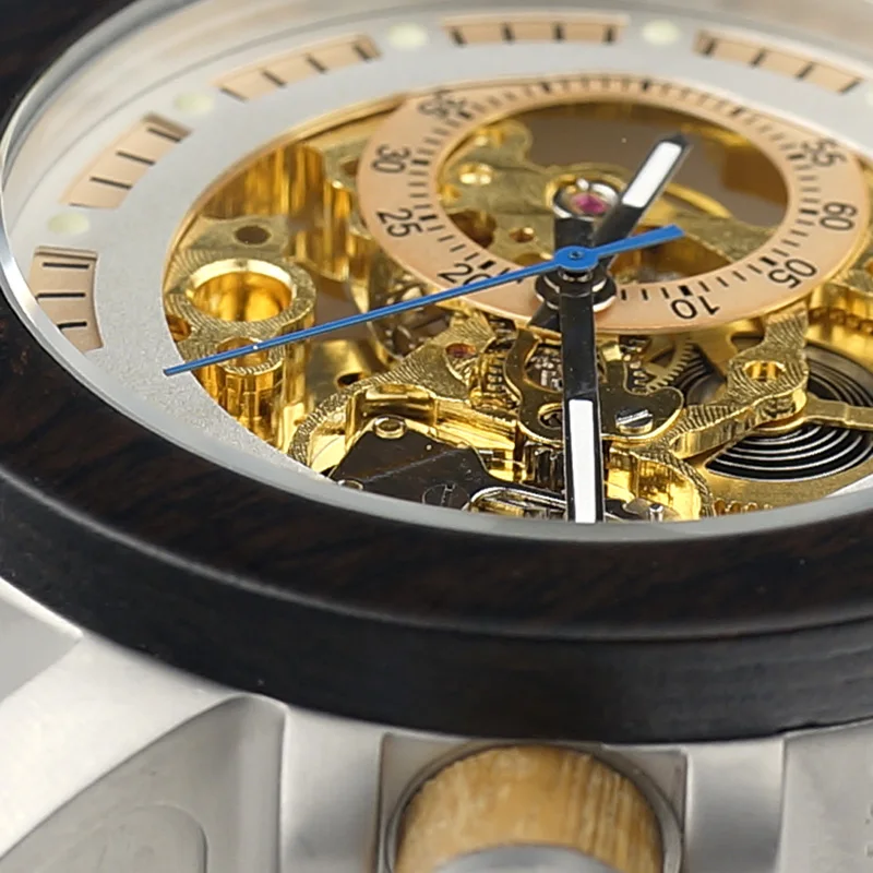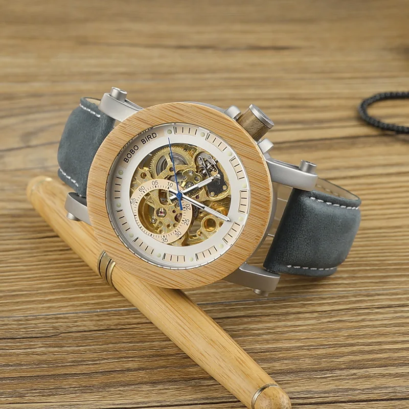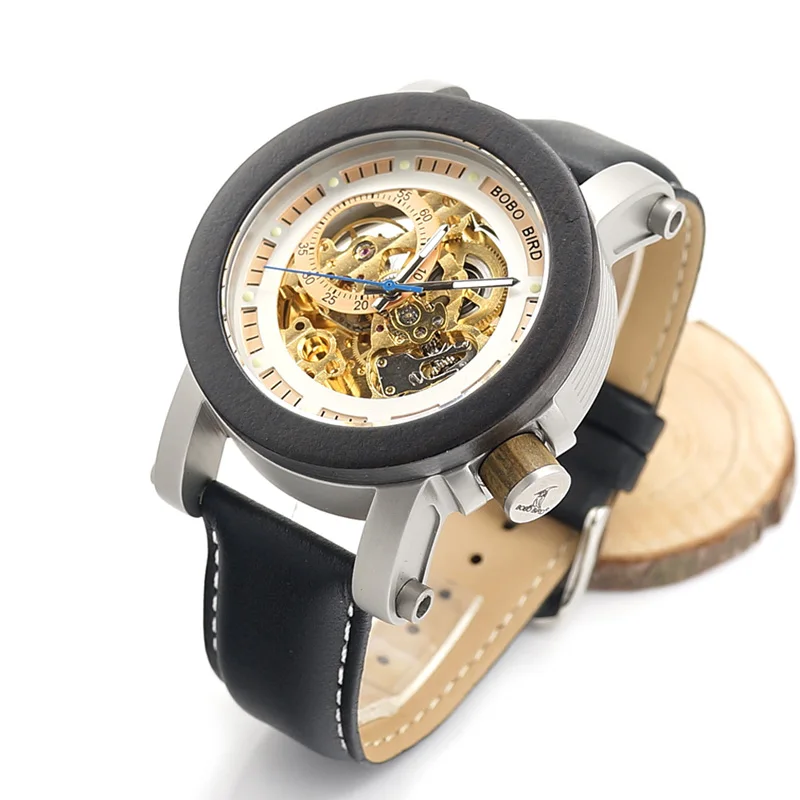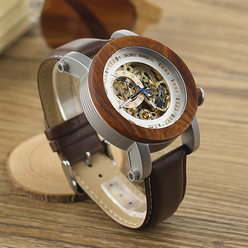 Мужские механические часы BOBO BIRD с деревянным ремешком, автомати...