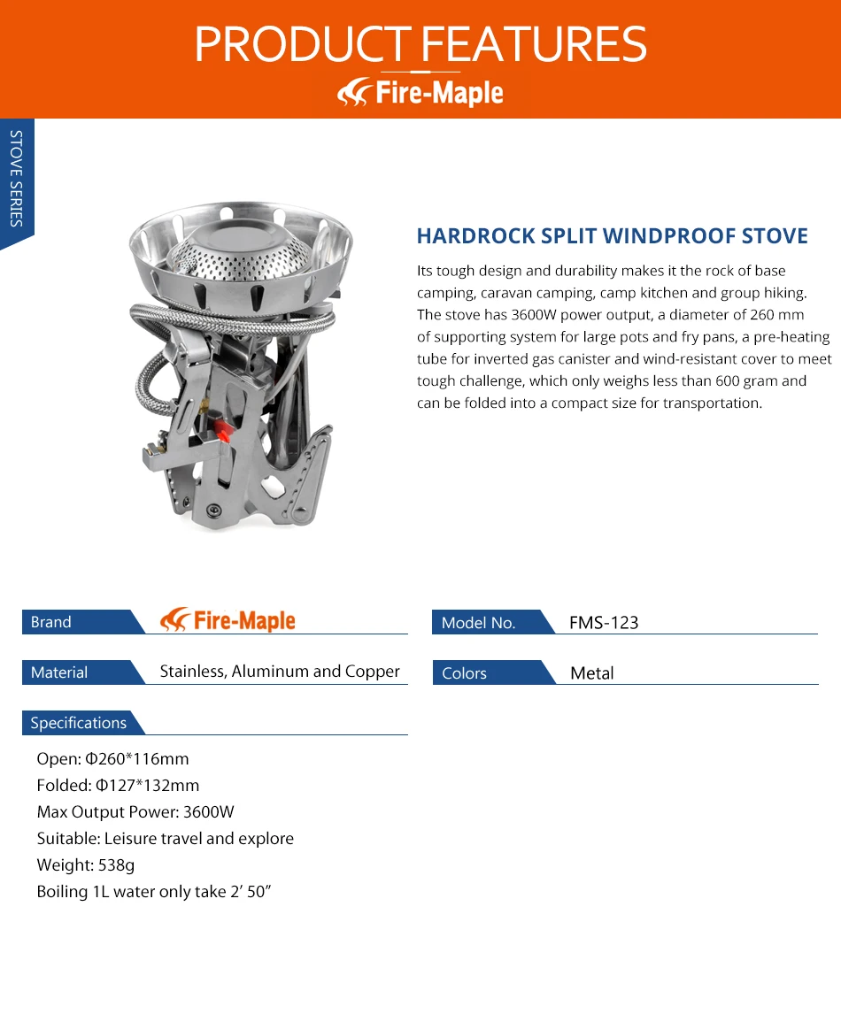 Fire Maple газовая горелка для кемпинга ветрозащитная 3600 Вт дистанционная газовая плита FMS-123 уличная пожарная плита
