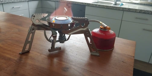 Мощная горелка. Устойчивая. Немного странный пьзоподжиг - искра есть, но газ поджигается только при больших потоках.