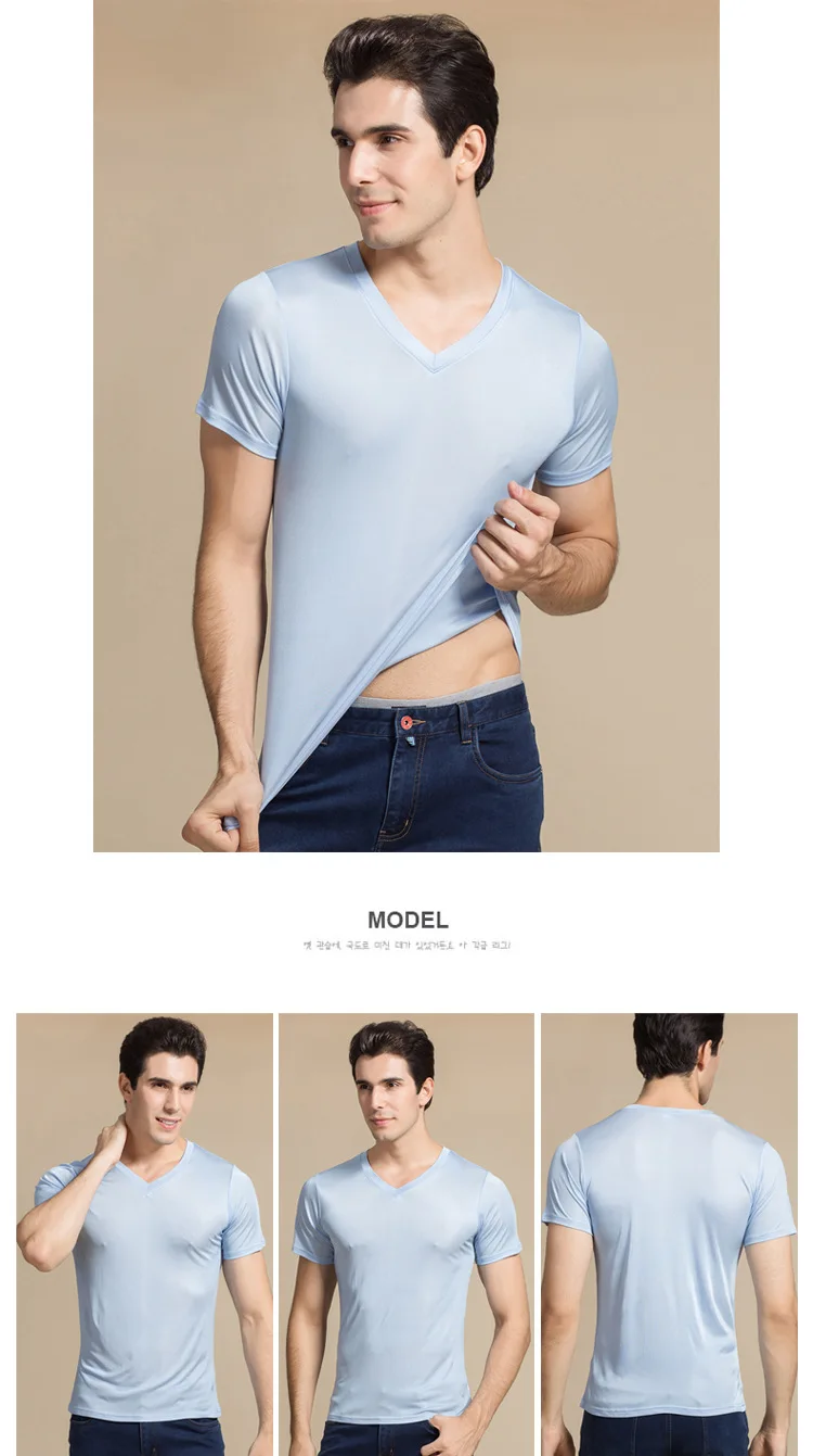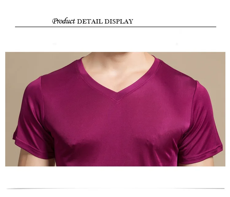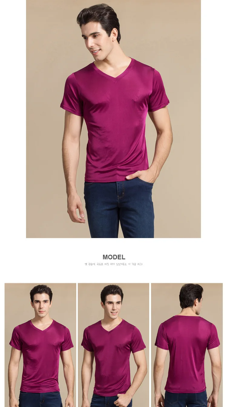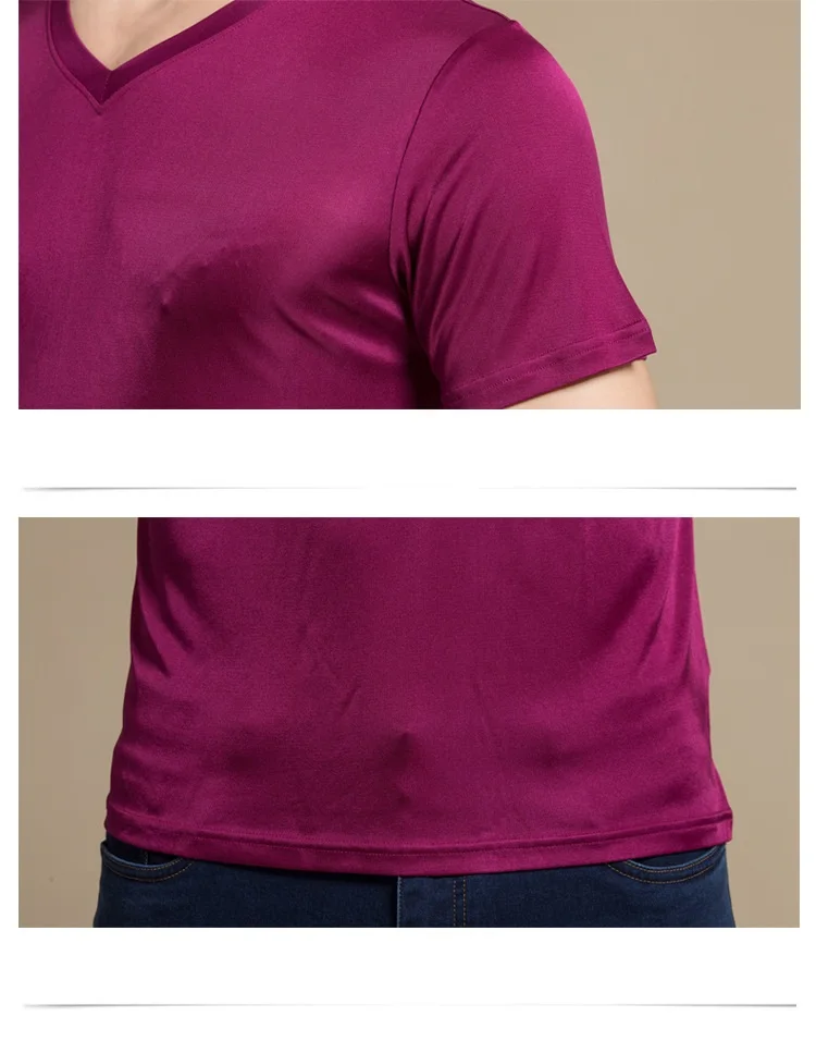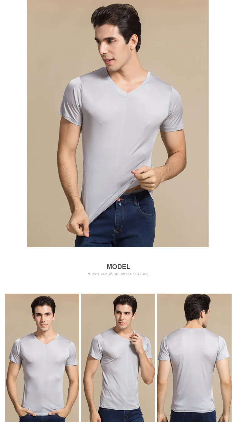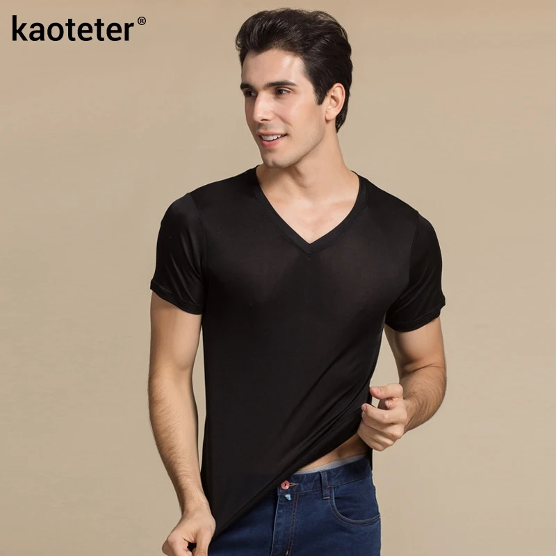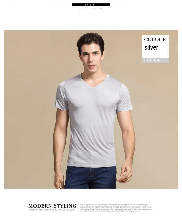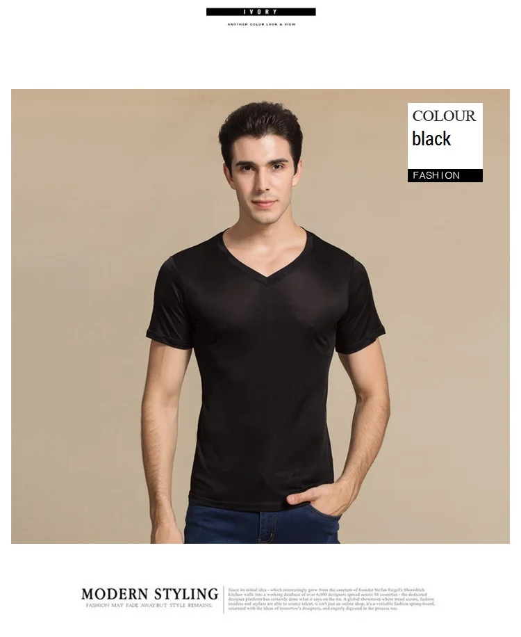 Мужская Однотонная рубашка из 100% натурального шелка, с коротким рукавом и V-образным вырезом, черная, белая, футболка, свитер