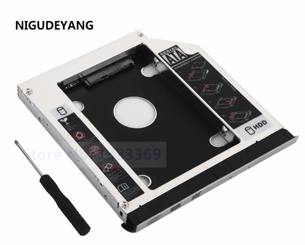 2-й жесткий диск Optical bay Caddy / Adapter обеспечивает вам максимальную гибкость хранения данных. С помощью второго жесткого диска/SSD в вашем ноутбуке для замены оптического диска, вы можете ускорить резервное копирование важных приложений и критических данных (Просто удалите CD-ROM диск и поместите Caddy (с дополнительным жестким диском) на своем месте;