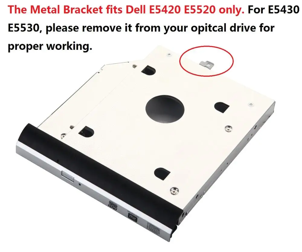 Примечание:Задний металлический кронштейн подходит только для E5420 E5520!Для ноутбуков E5430 E5530, пожалуйста, снимите кронштейн из настоящего металла с вашего оптического приводаИ повторно Прикрепите его на трубу для правильной работы. Спасибо.