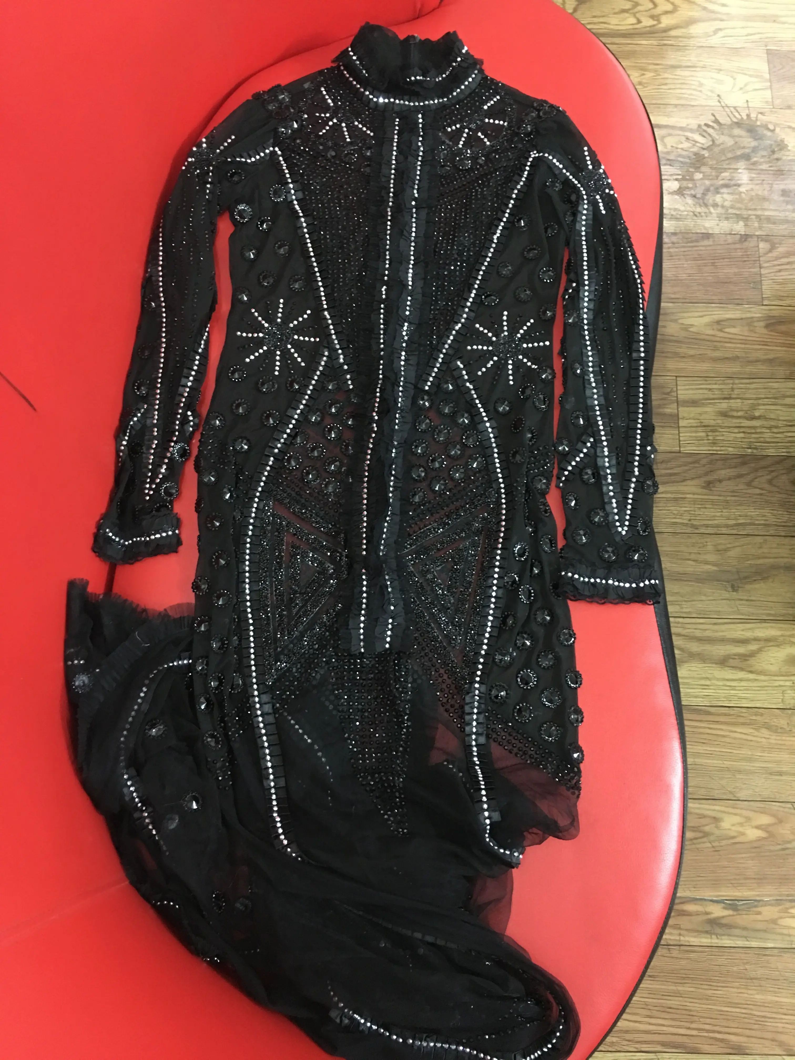 Черное длинное платье, стразы, сексуальный женский костюм для вечеринки на день рождения, женские платья для выступлений